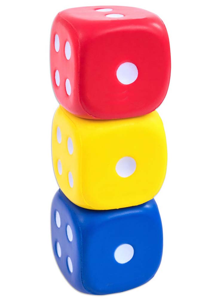 Augenwürfel aus Schaumstoff, 3 Stück (rot, blau, gelb)