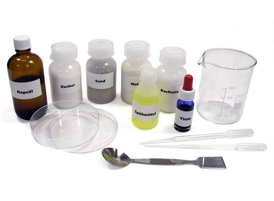 Lieferung komplett mit Material, Anleitungs- Lösungs- und Erklärungskarten und Begleitheft für Lehrkräfte. Kopiervorlagen für Schülerarbeitsblätter sind für jedes Experiment im Begleitheft