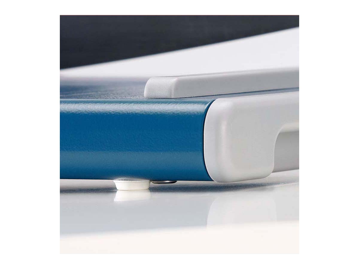 - Stabiler Metalltisch mit abgerundeten Kanten und rutschfesten Gummifüßen