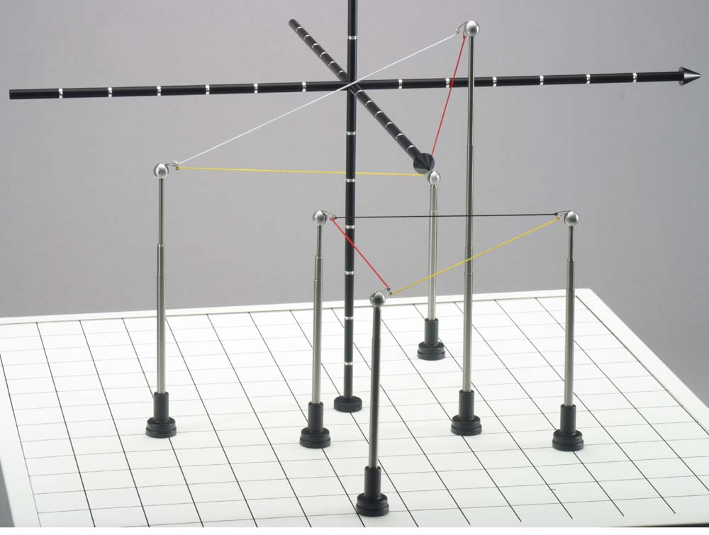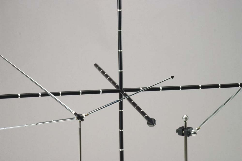 An jeder Kugel lassen sich bis zu drei teleskopartige Vektorpfeile anbringen. die Ortsvektoren werden im Koordinationenursprung befestigt.